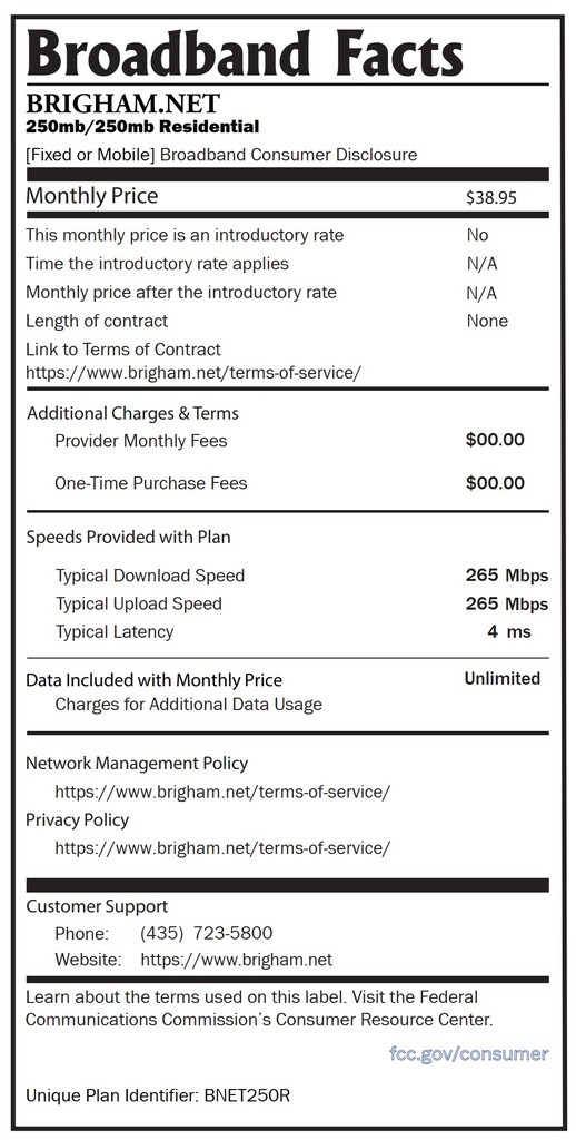 The speeds displayed were all tested on a typical connection provided to a residential customer. All tests were performed using a hardwired router connected to a standard Utopia ONT. Wireless speeds will typically be less than shown due to distance, interferance, and hardware limitations of wireless devices.